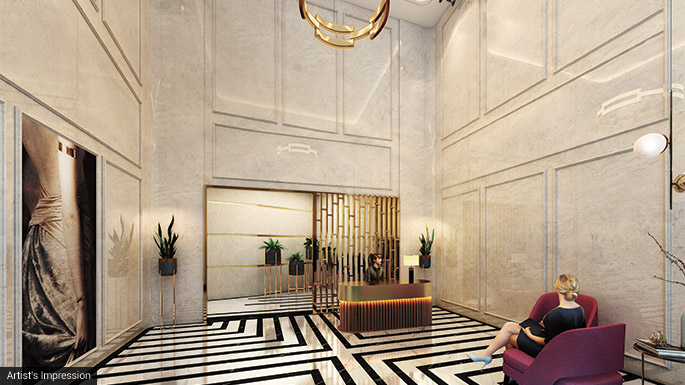Double Height Grand Entrance Lobby with 3 High-speed Elevators